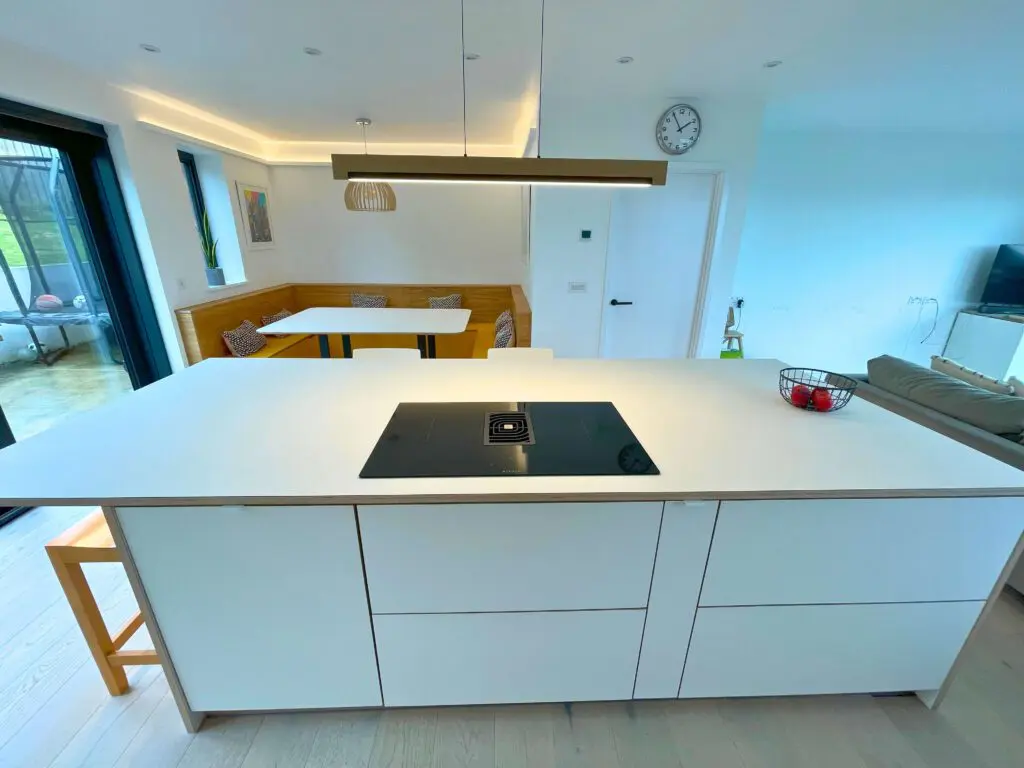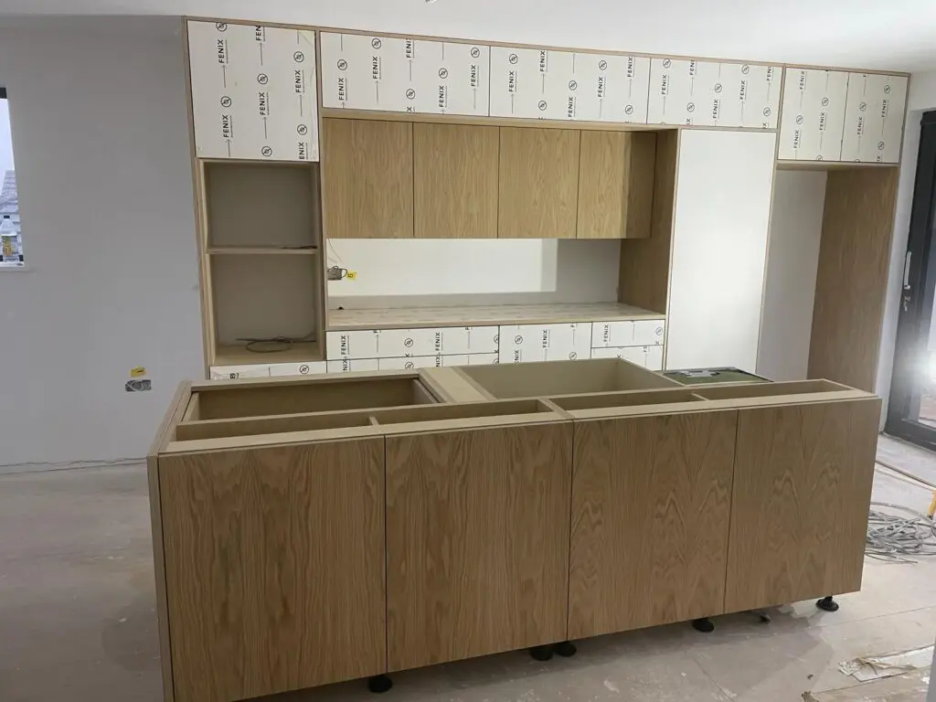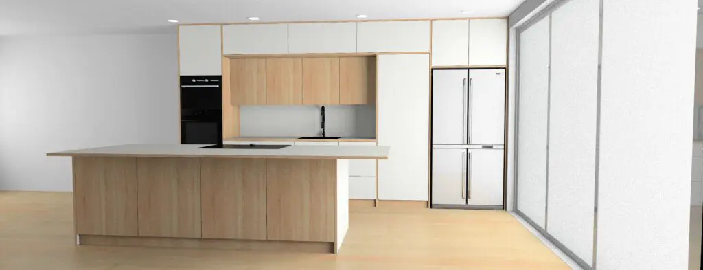 Today, we’re excited to share one of our projects from our Plywood Kitchens range, created for a client near Bristol. This is a stunning, sleek kitchen transformation focused on functionality and that signature Scandinavian style. The modern kitchen features bespoke cabinetry crafted from plywood, finished with natural oak veneer and white Fenix NTM laminate. We’ve kept clean lines and made clever use of space to perfectly suit the client’s preferences, enhancing the beauty and functionality of their home.