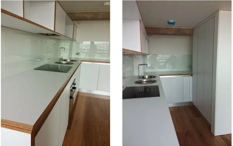 The installation process for these industrial-style kitchens at the Park Hill Estate was indeed a complex undertaking, requiring a high level of skill and precision from our team at JS DECO. One particularly challenging aspect was the incorporation of an aluminium profile situated between the worktop and kitchen units. This feature added both aesthetic appeal and functional benefits but demanded meticulous craftsmanship to ensure seamless integration.